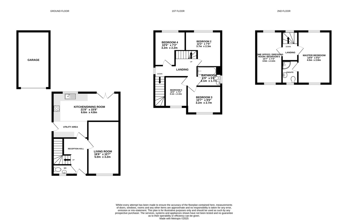 The first floor provides four well-balanced bedrooms, each offering flexibility for family, guests or additional workspaces, served by a modern family bathroom. Rising to the top floor, the principal suite occupies a private and tranquil setting, complete with skylights, fitted storage and a stylish en-suite. Adjacent to this is a versatile home office / walk-in wardrobe that could also serve as a sixth bedroom if required — perfect for remote working, creative use or additional accommodation in today’s market.