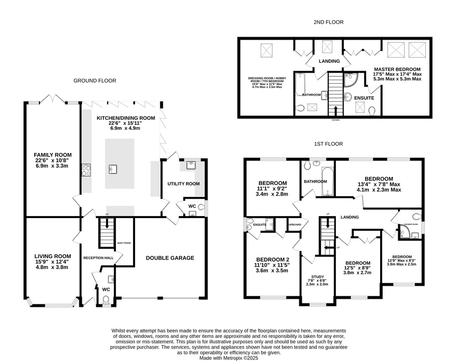 The first floor offers five double bedrooms, including a guest bedroom with en-suite shower room. A dedicated home office/study, family bathroom and an additional shower room complete this level, providing exceptional versatility for modern family life.